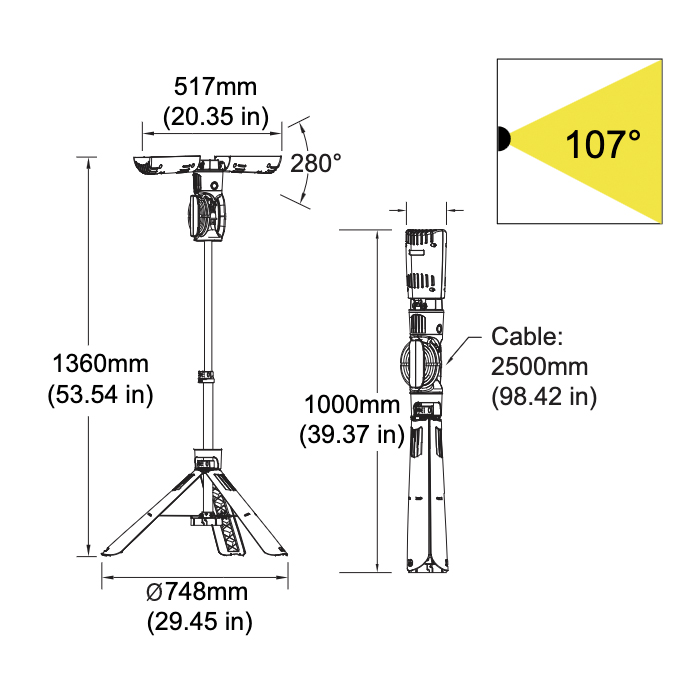 • Swivel light heads rotate vertically at 90° and horizontally at 330°