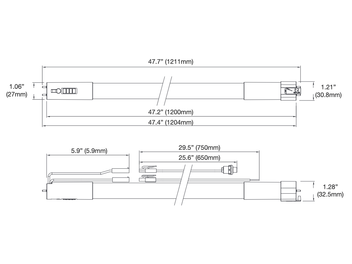 • Base: Medium Bi-Pin G13 (fixture powered by hardwire)
